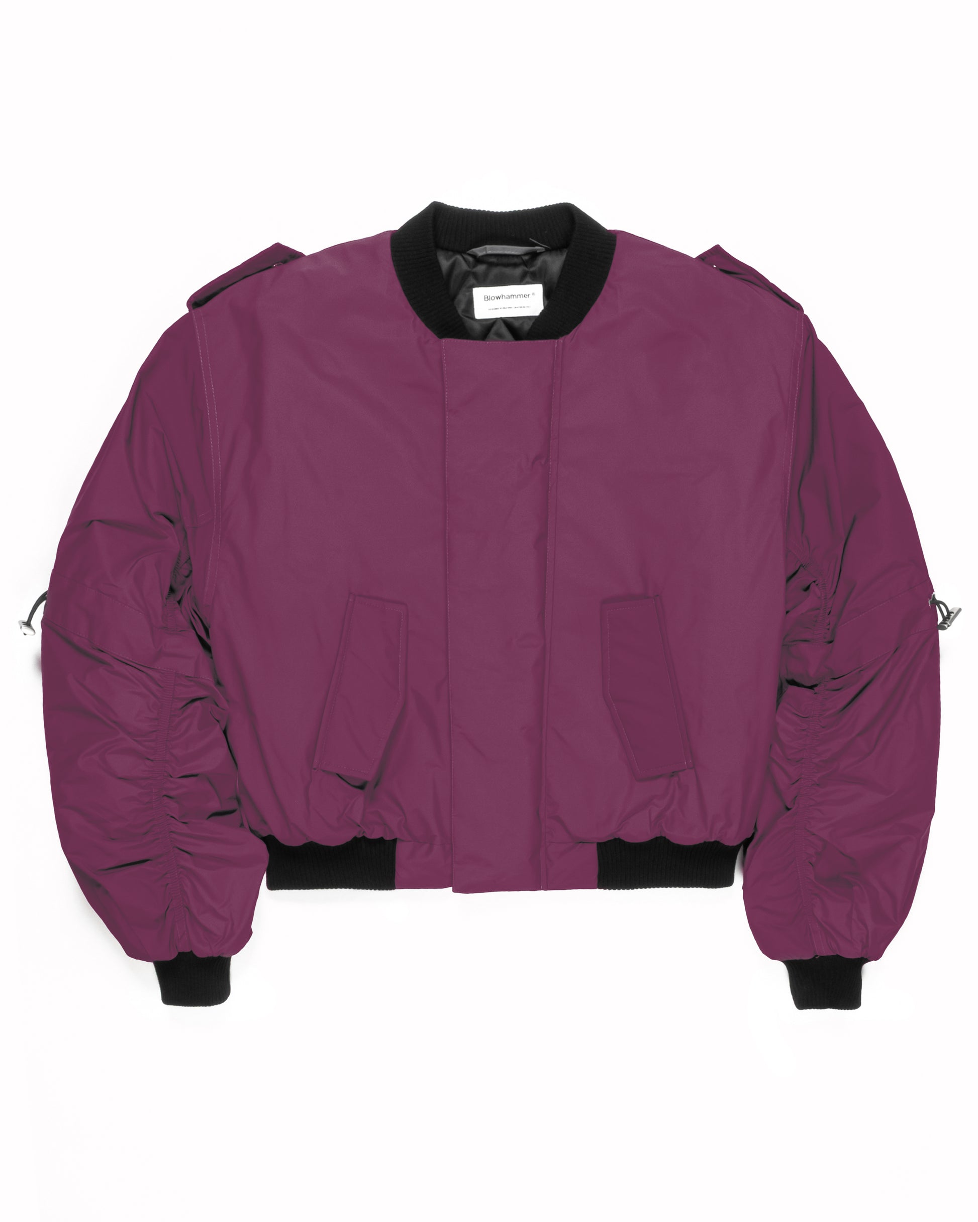 Collo a coste. Maniche lunghe con arricciature laterali. Chiusura frontale nascosta. Due tasche frontali con patta inclinata. Polsini e fondo a coste. Dettagli sulle spalle. Foderato. Imbottitura leggera.