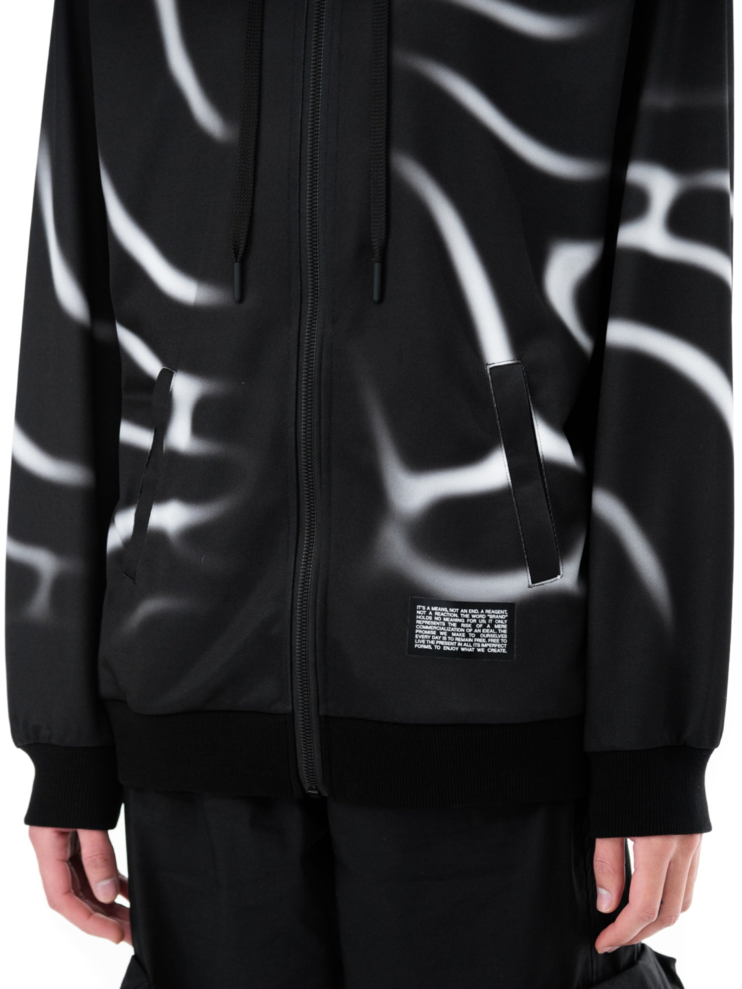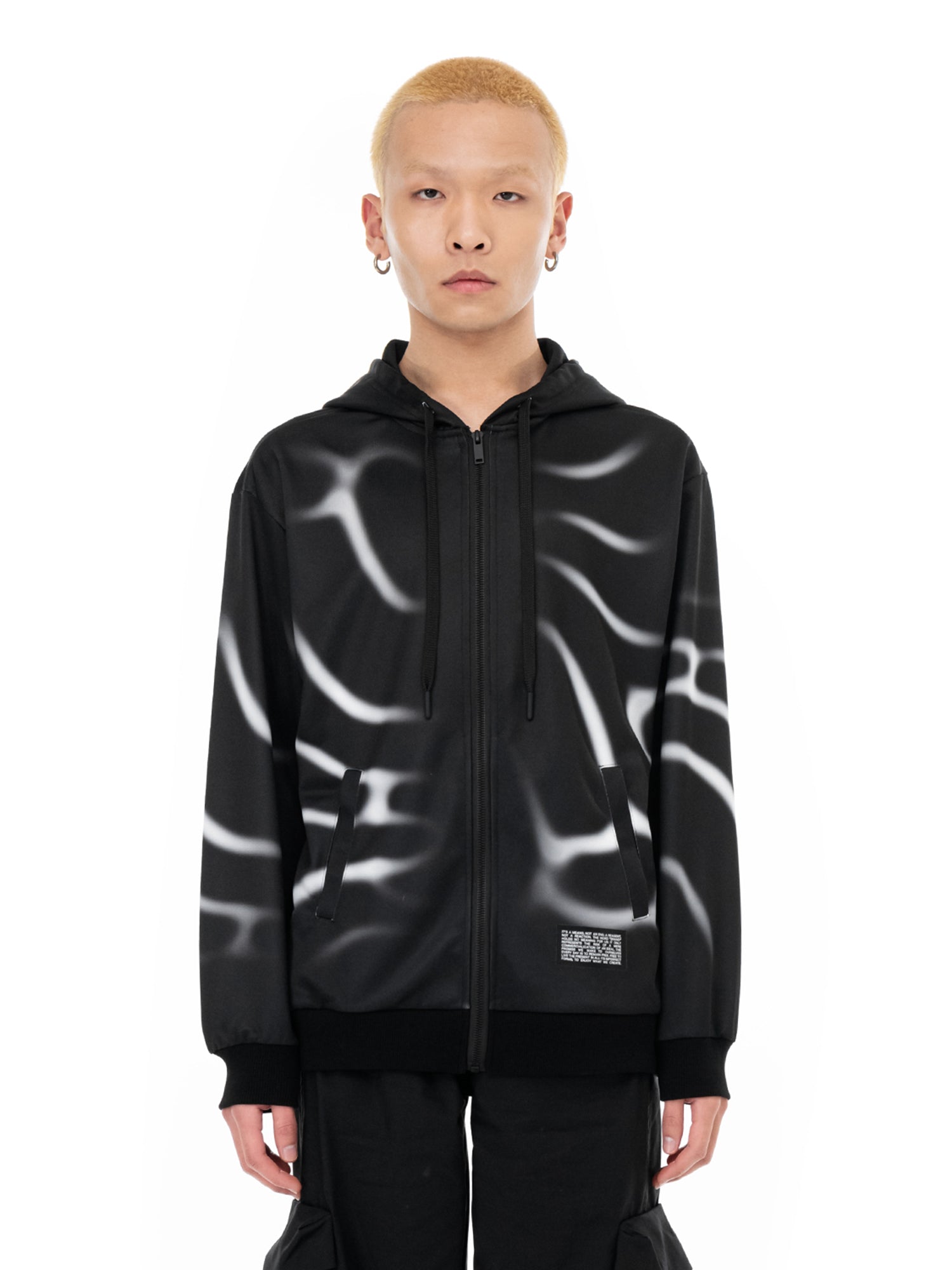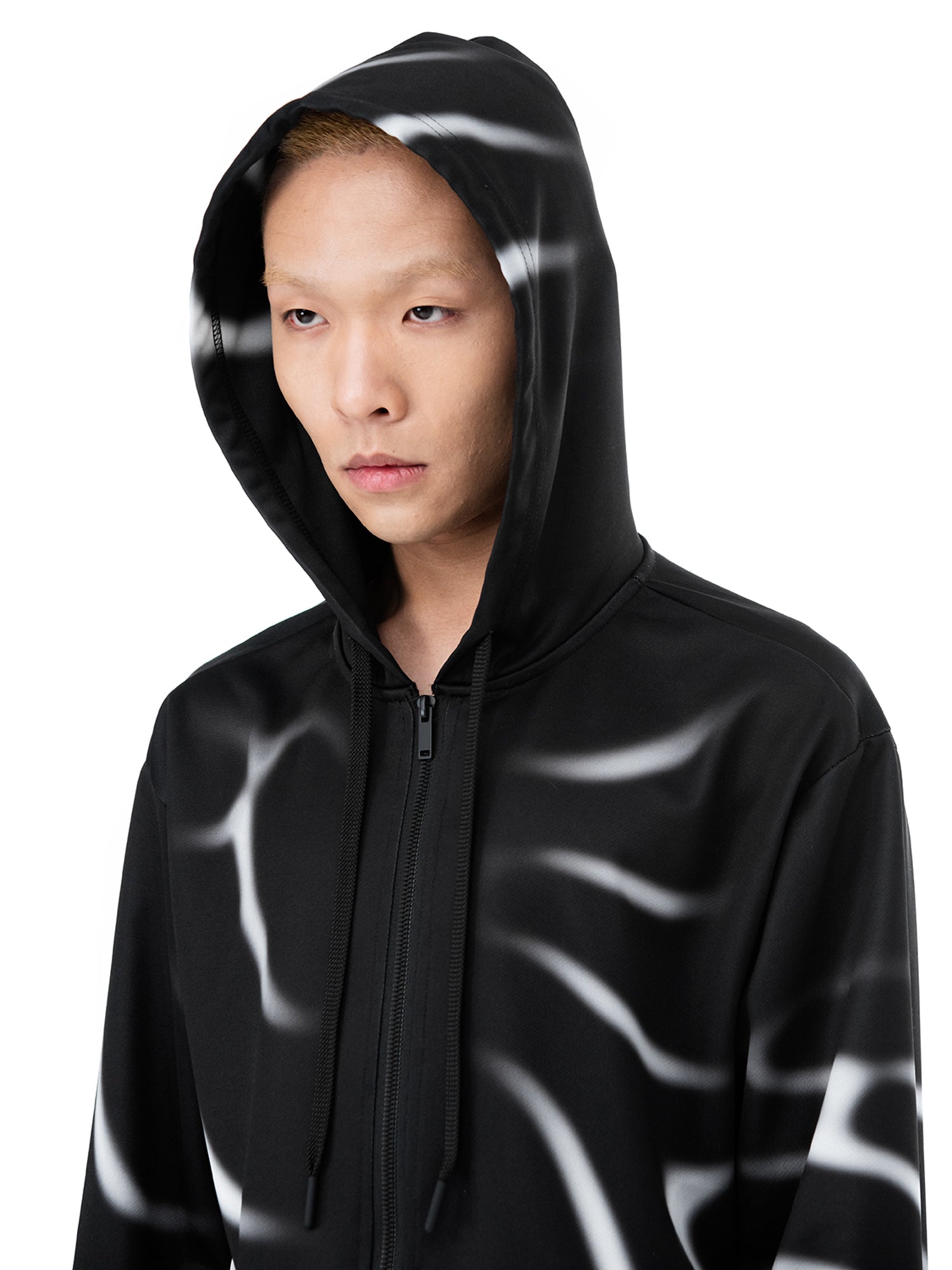 Verstelbare capuchon met trekkoord. Ritssluiting. Sublimatieprint en digitale print.