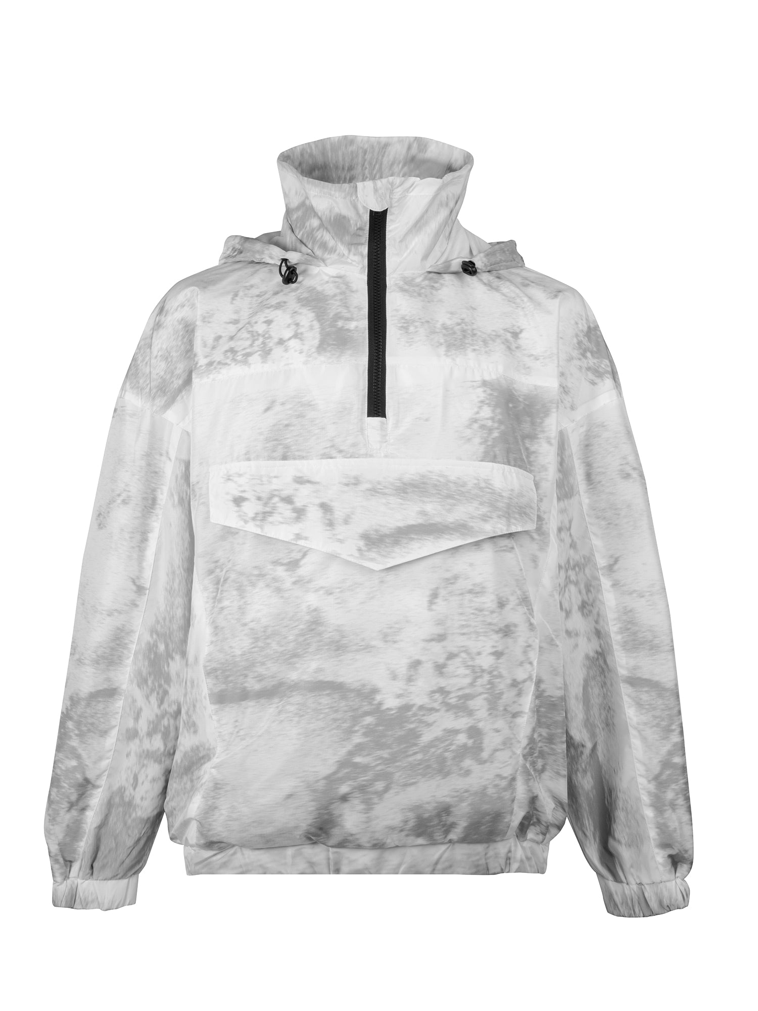 Verstelbare capuchon. Korte ritssluiting. Kangoeroezak. Elastische manchetten en zoom. Aangebrachte gevouwen label.