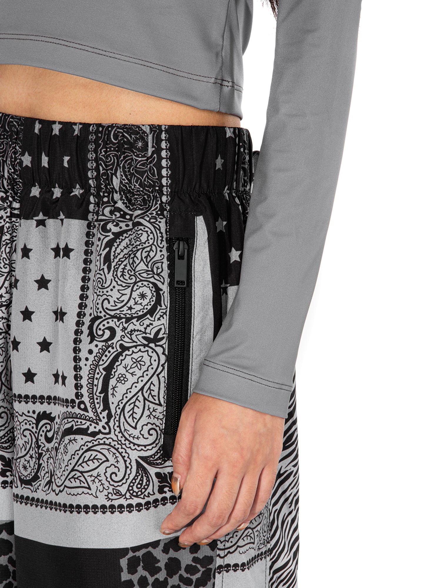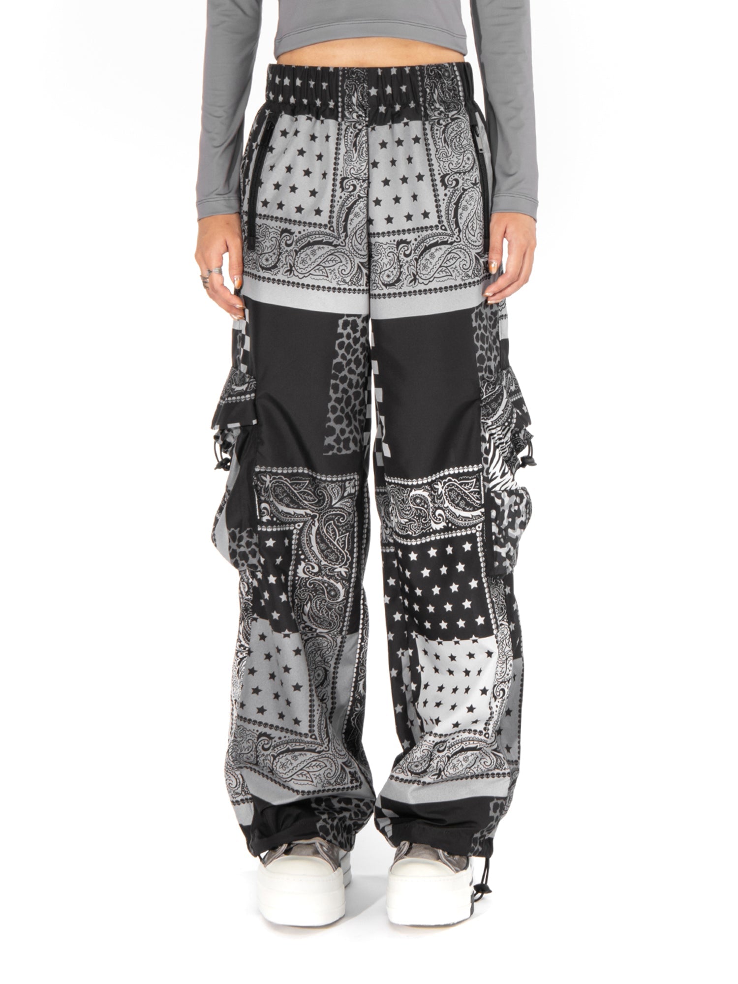 Verstelbare elastische taille. Zijzakken met ritssluiting. Grote zakken op de pijpen met stoppers. Verstelbare enkelzoom. Sublimatieprint en aangebracht label.