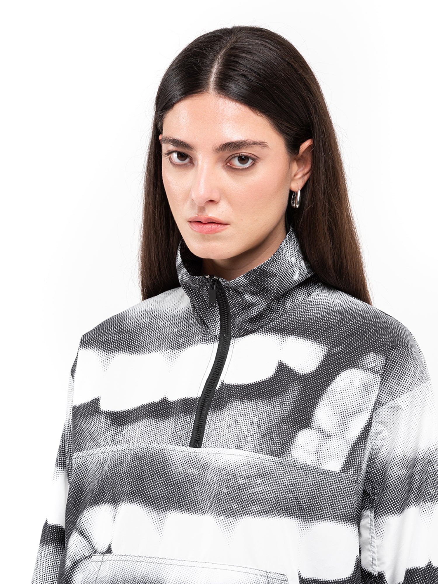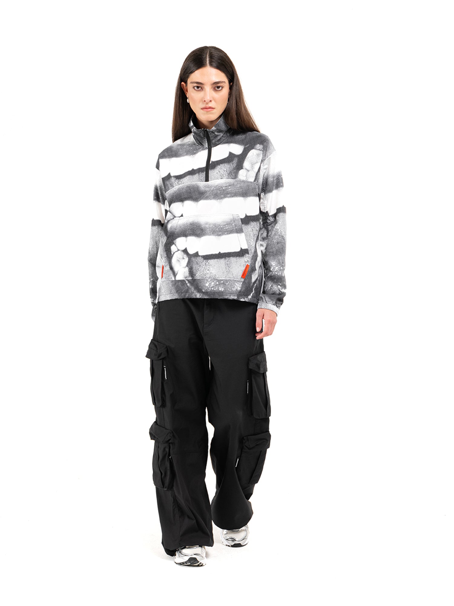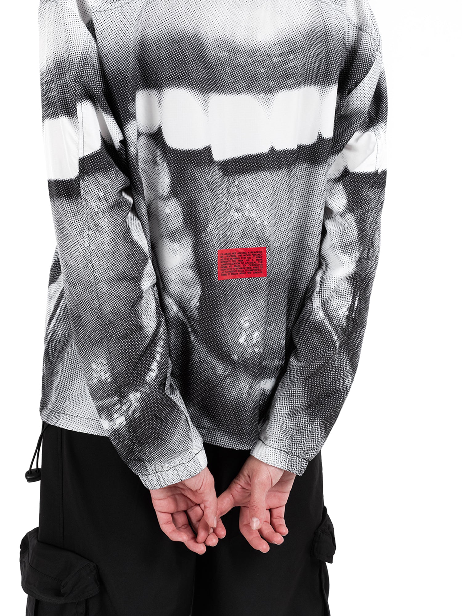 Ritssluiting. Sublimatieprinten en digitaal printen. Etiket toegepast. Groot voorvak.