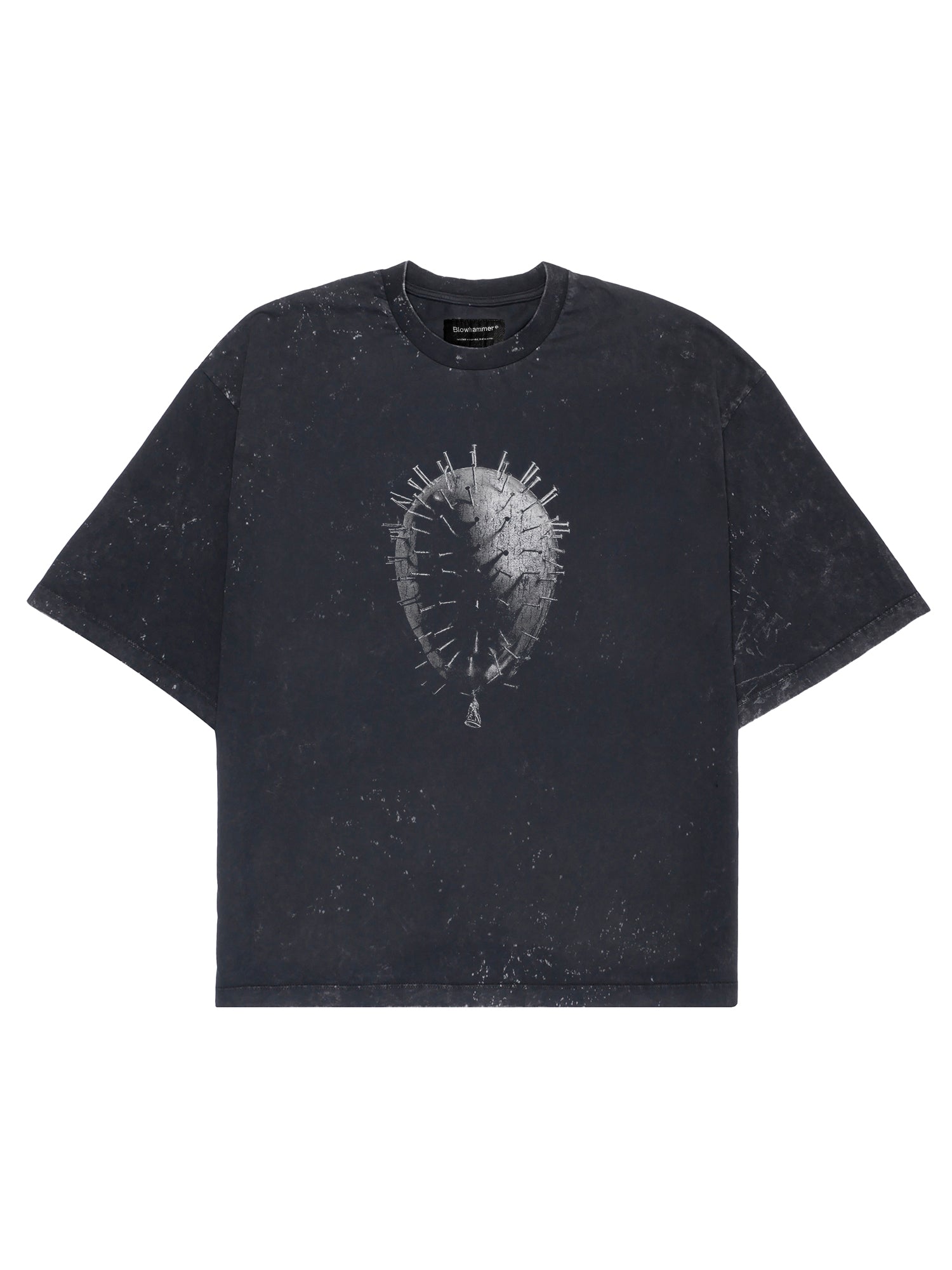 Kassede T-shirts med marmorvask. Ronde hals. Korte mouwen. Digitale print.