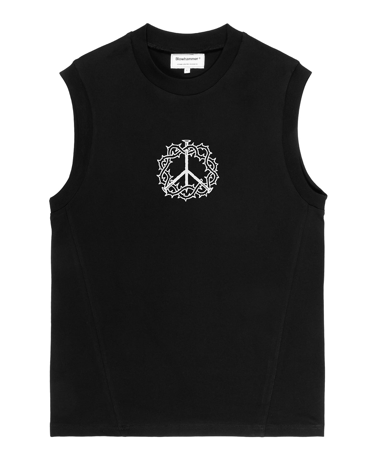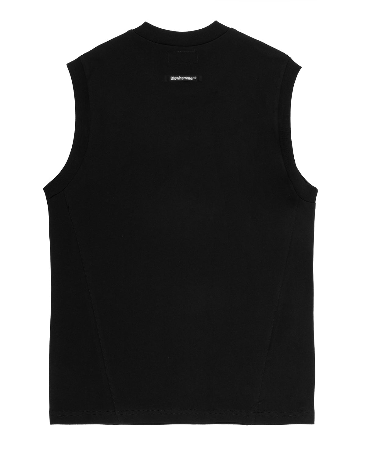 Crew-hals. Mouwloos. Thermo-toegepast printen.