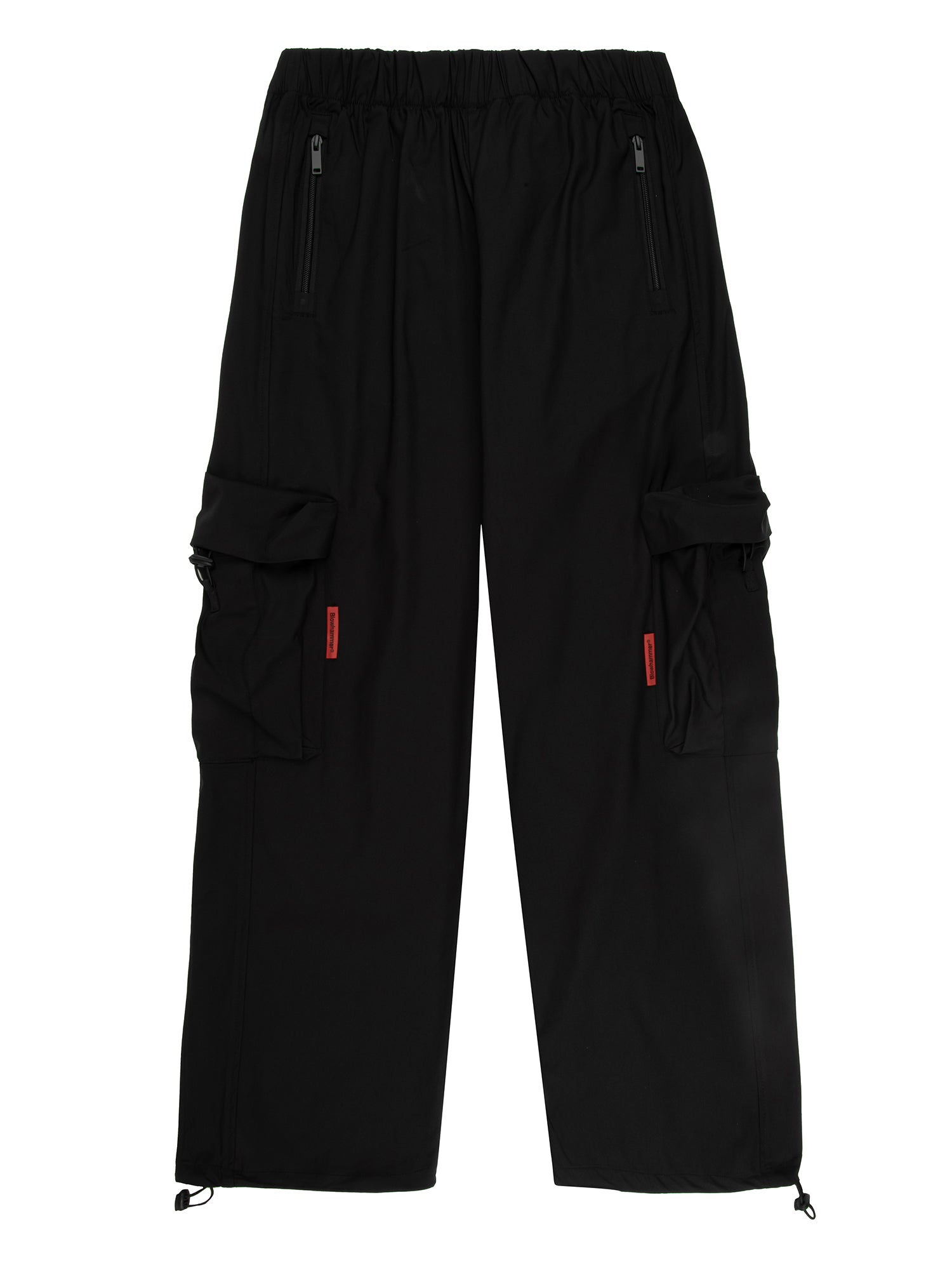 Verstelbare elastische tailleband. Zijzakken met rits. Zakken op de benen met stopper. Verstelbare enkelboorden. Aangebrachte gevouwen label.